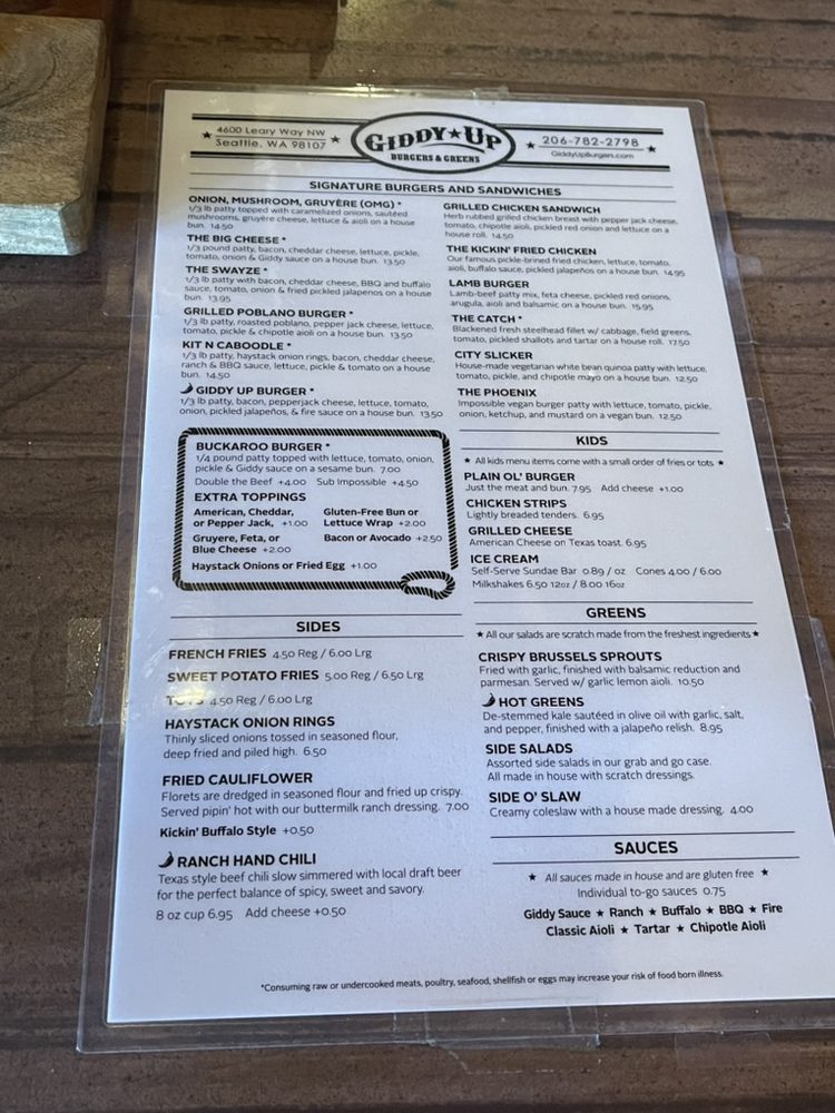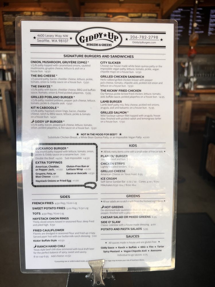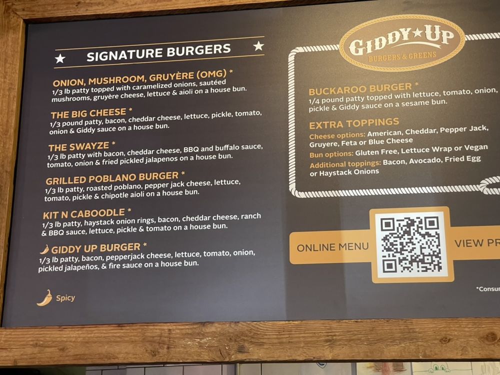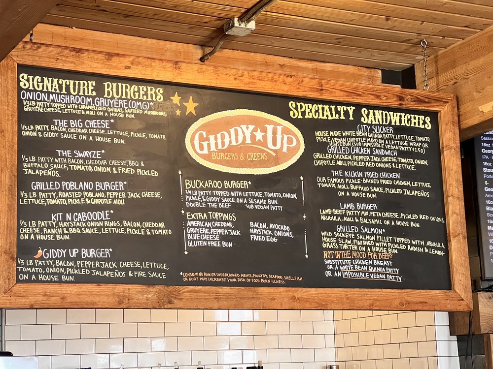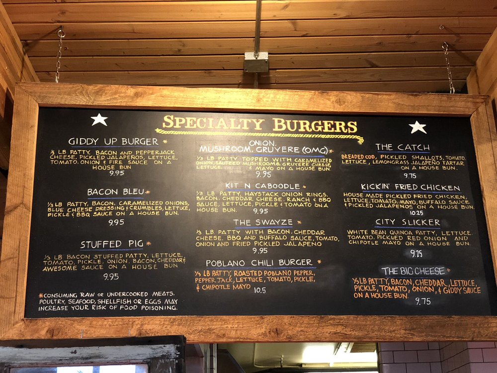 Giddy Up Burgers Menu (2025 Update)